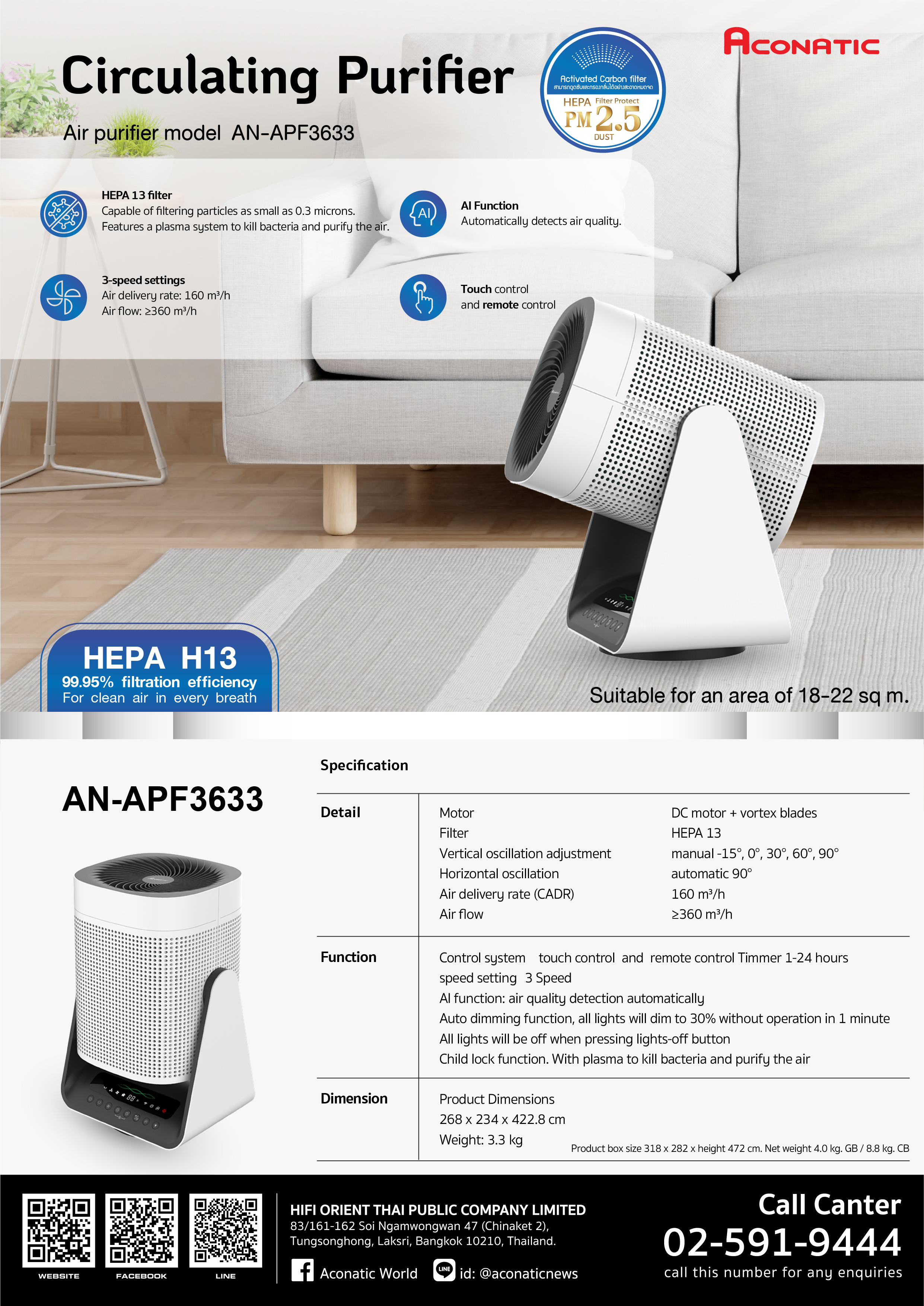 กำจัดสารก่อภูมิเเพ้, กำจัดแบคทีเรีย, กำจัดกลิ่น, โหมดประหยัดพลังงาน, แผ่นกรองอากาศฝุ่นละอองประสิทธิภาพสูง